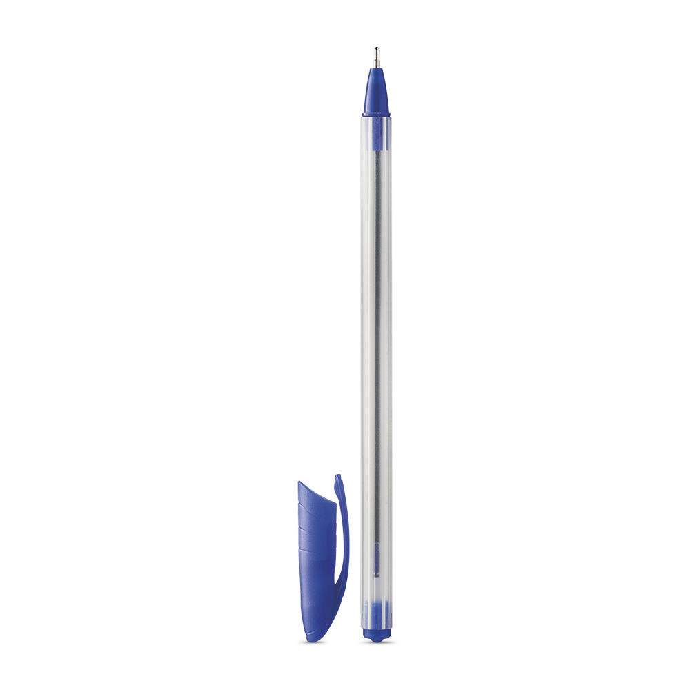 Caixa com 50 canetas de escrita macia, ponta 1,0 mm, corpo hexagonal confortável e tinta que seca rápido e não borra.
